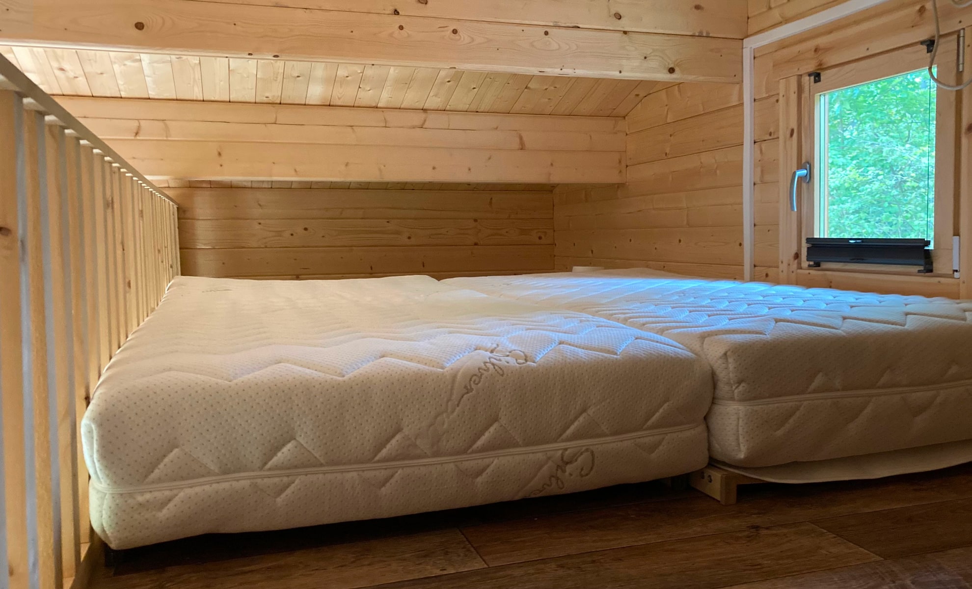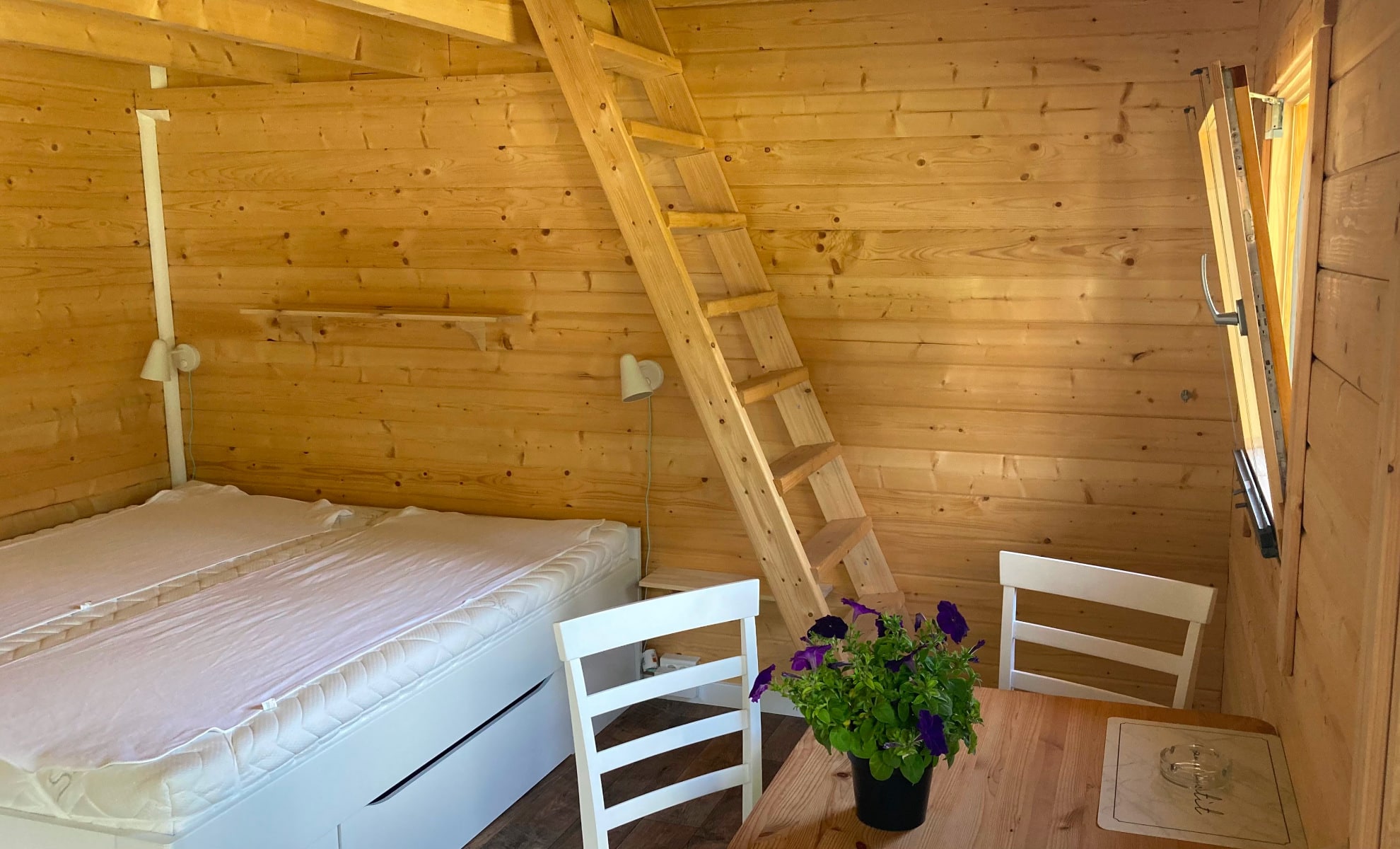 Die gemütliche Gästehütte „Adlerhorst“ ist mit ihren 20 Quadratmeter bestens für zwei Erwachsene und zwei Kinder geeignet. Besonderes Kennzeichen des Adlerhorstes ist der Schlafboden mit zwei Matratzen den wir für Kinder ab 10 Jahren empfehlen.